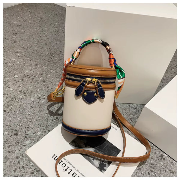 Exquisite PU Leather Bucket Bag Women New Cylinder Portable Hand Bag Large Capacity Shoulder Crossbody Bag for Travel Shopping