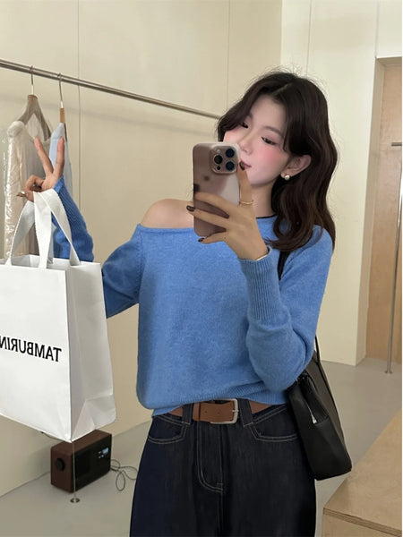 The one-shoulder design adds a modern twist to this classic knitwear, making it a standout piece in any collection.